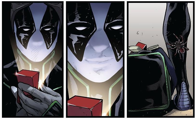 ,出自《蜘蛛侠》(Spider-Man)第90期。漫画中蜘蛛侠意外穿越到反物质空间,从一名叛军领袖幽暗(Dusk)手上得到这套特殊的黑色战衣,最终为叛军赢得了胜利并把制服带回了家。