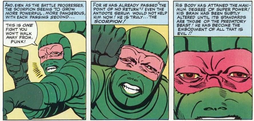 ,为了对付蜘蛛侠而参与了一项试验,得到一套高科技蝎子战服。这个角色曾在《蜘蛛侠:英雄归来》中短暂出场,由迈克尔·曼多饰演。
