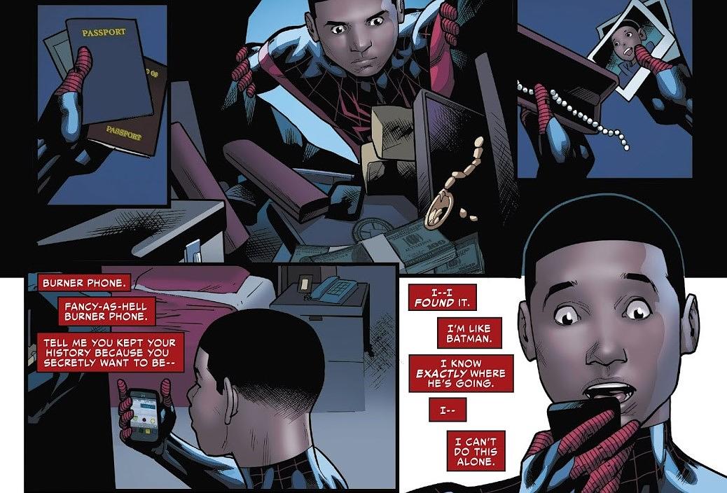 漫画中,当发现自己的超能力后,迈斯尔本来并没有当蜘蛛侠行侠仗义的意愿。但在目击彼得·帕克为了阻止反派而身亡的现场后,迈尔斯对当时自己没有做出任何行动感到愧疚,开始意识到该用自己的能力去做好事。删除