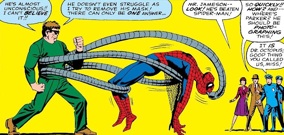 漫画中奥托曾在死前与彼得·帕克互换身体,由于受到彼得的正义感影响,奥托领略到了蜘蛛侠的责任,成为了新的英雄