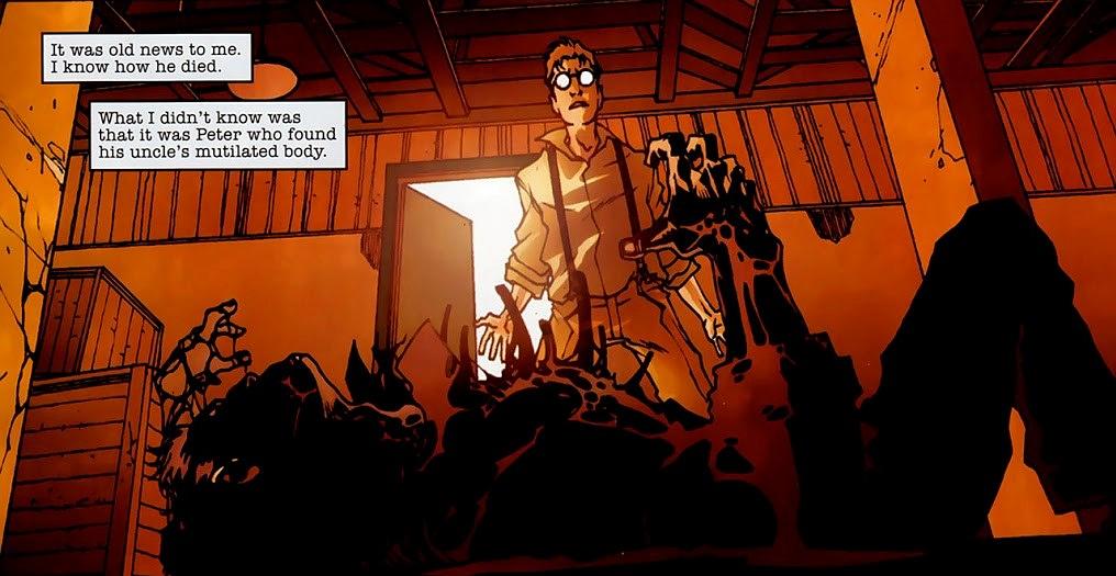 后来徘徊者(迈尔斯的叔叔)潜入奥斯本实验室偷窃时,一只变异蜘蛛溜进了他的提包。
