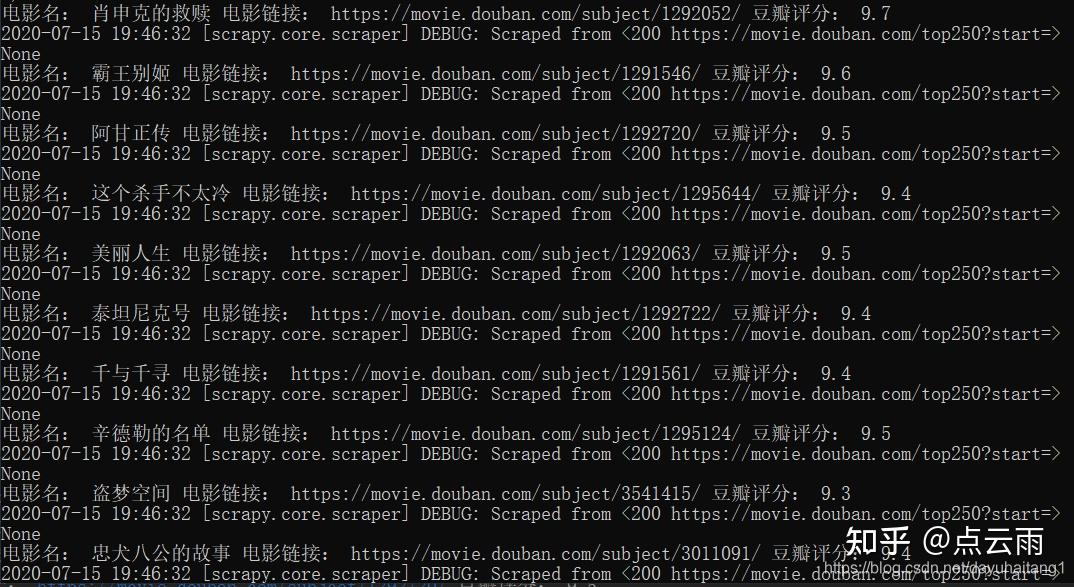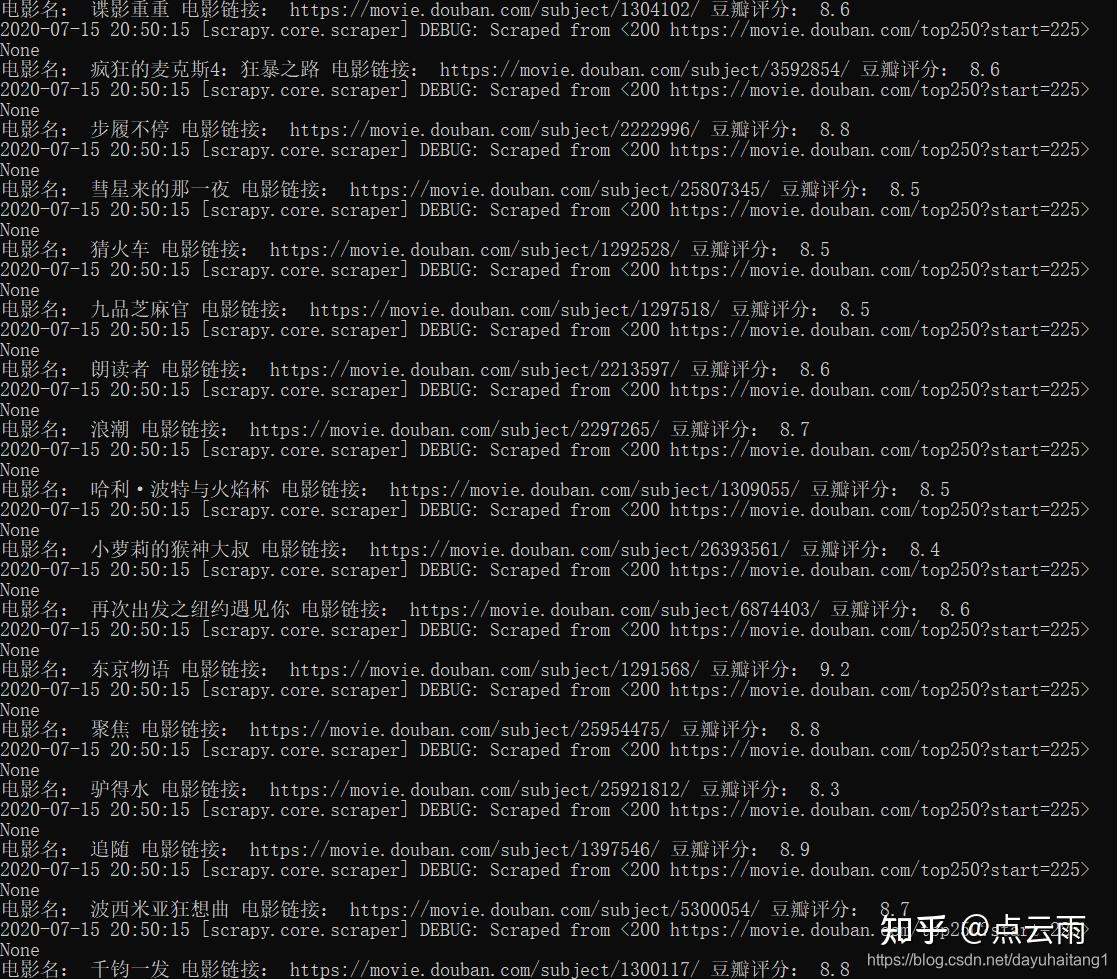 print("电影名:",item['movieName'],end=' ') #简单输出提取到的代码