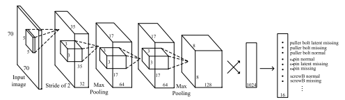 再次借助DCNN,通过4个卷积层对缺陷进行分类(分类网络结构如下图)。