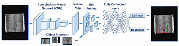 Fast RCNN的作用为对图像中的缺陷位置进行定位和分类,其结构流程如上图所示。