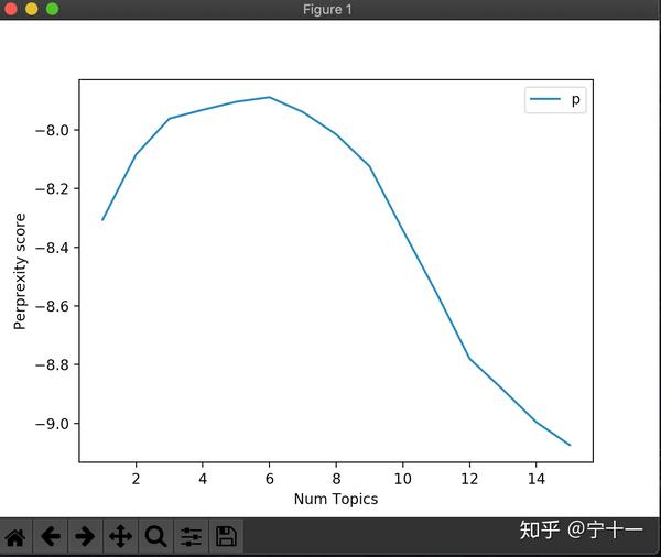 得到这个结果后,我们便可以分析数据了。由前面的分析,我们知道,困惑度是越低越好的,那么我们应该选择主题越多越好,但是,显然这是不对的。因为当主题太多时,我们的模型已经过拟合了。我们发现当主题个数超过8时,模型的困惑度就会一直下降。所以,我们在1-7的主题个数中考虑最终的主题个数。