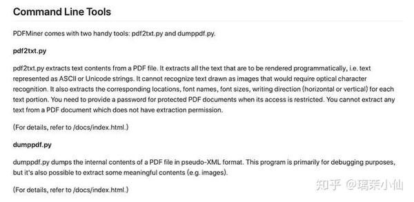 下拉页面,可以看到专门有一个部分,给你介绍如何使用 pdfminer.six 命令行完成文本提取功能。
