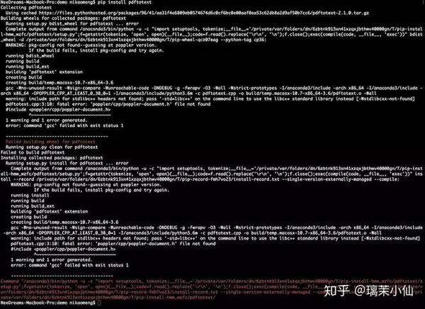 用 pip 安装 pdftotext 这个软件包,总是报错。