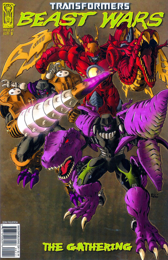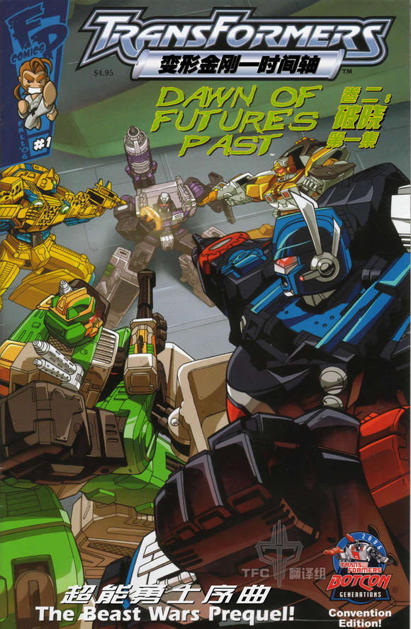2、2006年漫画《破晓》("Dawn of Future's Past"),BW超能勇士第一集前的故事。围绕霸王龙小队盗得金盘后,如何逃离赛博坦,知道进入虫洞穿越到史前地球的故事进行展开。其中导弹车霸王龙,以及擎天圣小队等人的赛博坦形态,人气很高。而在这段故事发生的宇宙中,原始兽是在霸天虎被打败后,由巨狰狞成立的新势力(巨狰狞和原始兽英文是一个词),三虫仙负责管理,而利爪则是背后真正的首领,但被三虫仙背叛后下落不明。直到漫画最后利爪现身。在FP公司很多宇宙中,比如飞翼宇宙中,都承认发生过《破晓》的故事。其他公司笔下的宇宙则不一定了。