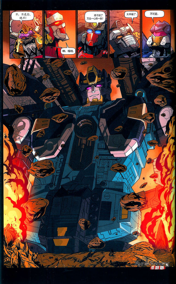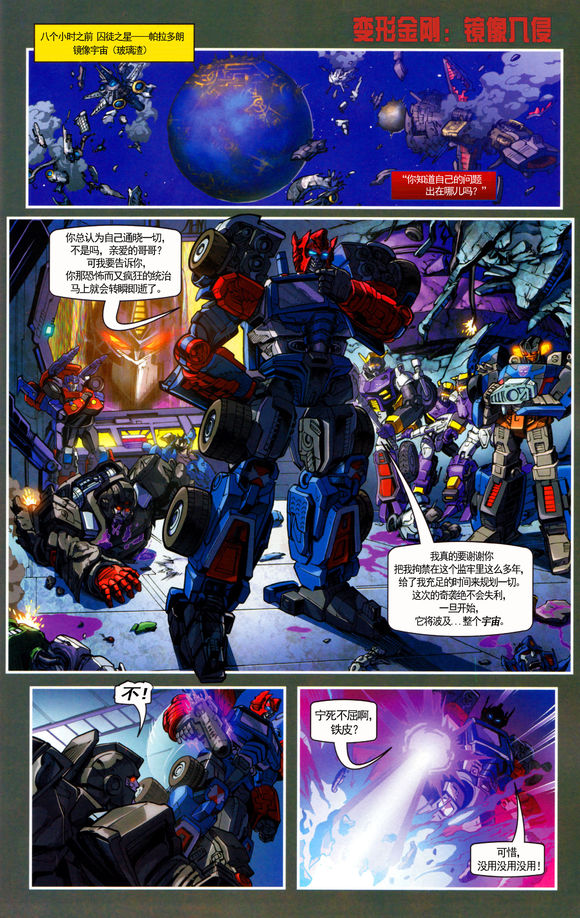 4、这里剧情有分支,天陨+地震+断离,三人传送至超变体宇宙,飞过山被传送到镜像宇宙。想更好了解故事的话,可以先看一下飞过山被传送到镜像宇宙的时间轴系列漫画中的《黑白颠倒》,他协助正义威震天(卫震天)阻止邪恶擎天柱(倾天柱)征服宇宙的方周计划。