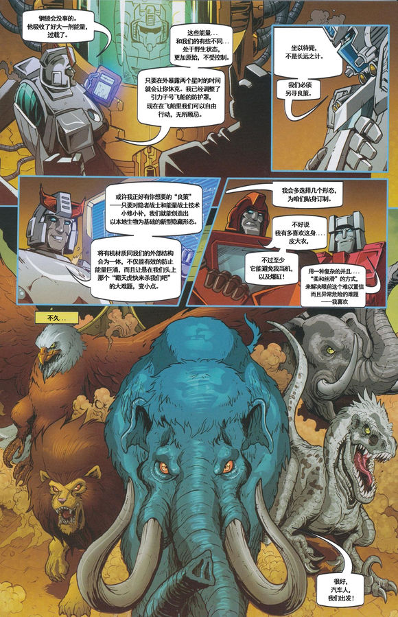 9、第二个就是TCC2013年《镜像野兽战争》,经典宇宙通天晓和威震天小队正在打仗并且通过传送门,正好赶上镜像通天晓扎爆宇宙,阴错阳差没有受到牵连,反而传送到了镜像宇宙的BW时期的史前地球,通天晓变成通天猛犸,并且通过镜像沃克星人,找到的最初的矩阵,源母矩阵。最后在起义宇宙急先锋的帮助下,双方又传送回了镜像宇宙的正常时间线。