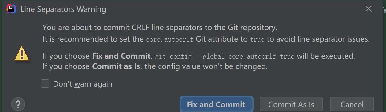 6、git提交代码时提示:Line Separators Warning You are about to commot CRLF line separators to the Git repository