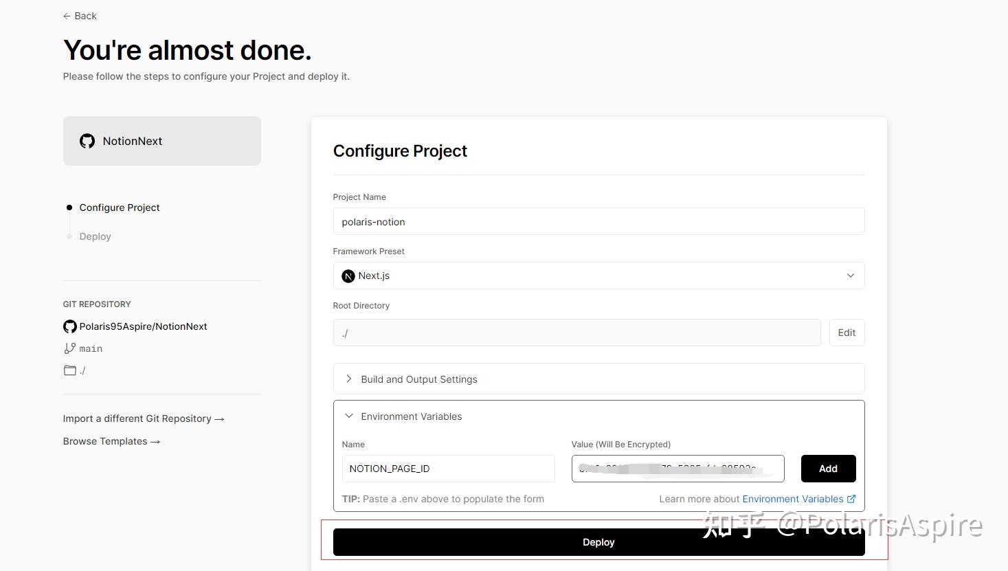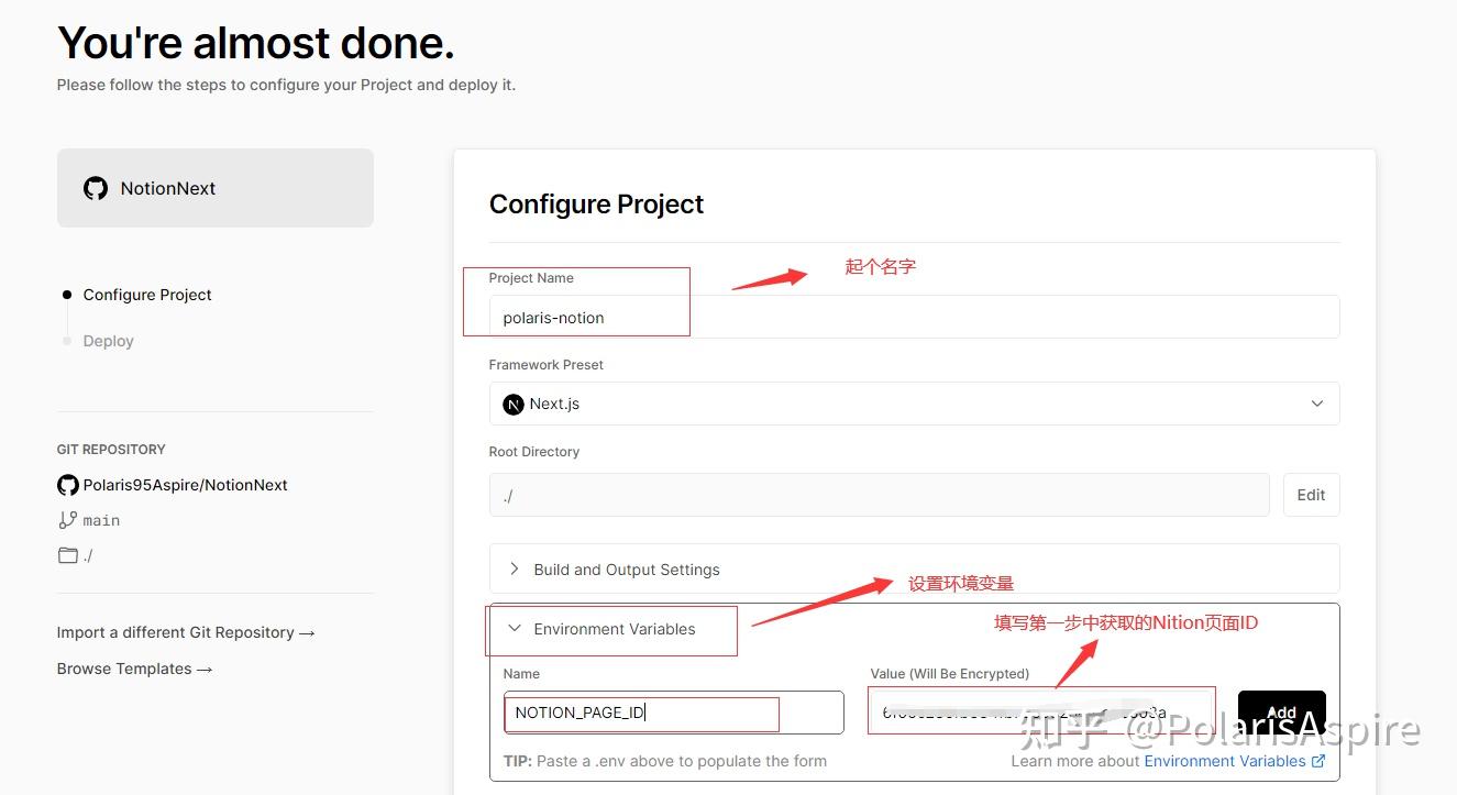 NOTION_PAGE_ID : 第一步里你的模板页面的Notion页面ID