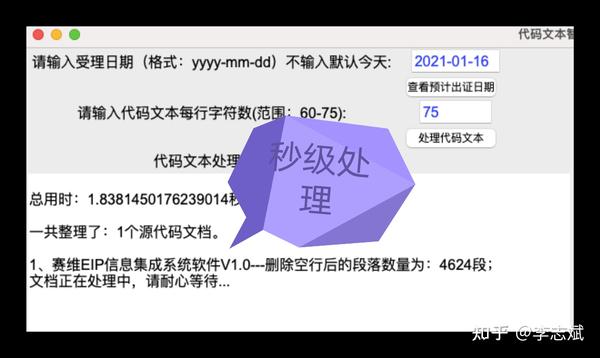 基于代码文本处理的耗时,不准确问题,我2020年8月接触到pytho编程,其编程学习坡度相对小些,经过几个月的学习和研究,开发了一个绿色工具,可以秒处理一个源代码文本,工作效率提升600倍,准确率为百分之百。