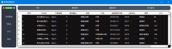 本项目是用Python开发的影视客户端,具有增删改查、下载资源和数据可视化等功能。