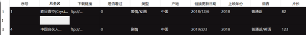 点击左侧菜单区的“浏览影库”按钮,可以在右下侧结果区看到数据库中所有影视数据的信息。浏览影库的效果如图所示:
