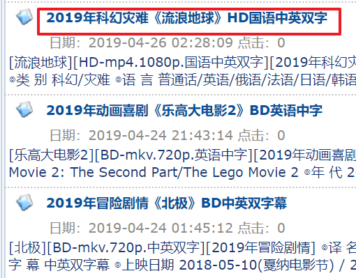 单部电影网址后部分类似于:/html/gndy/dyzz/20190427/58502.html,可以通过增加“电影天堂”网址前部分“ www.ygdy8.net ”组装成完整的单部电影网址