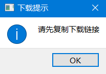 而当用户复制的内容不是下载链接时,客户端会弹框提示用户正确复制下载链接后,再使用下载功能。下载提示如图所示:
