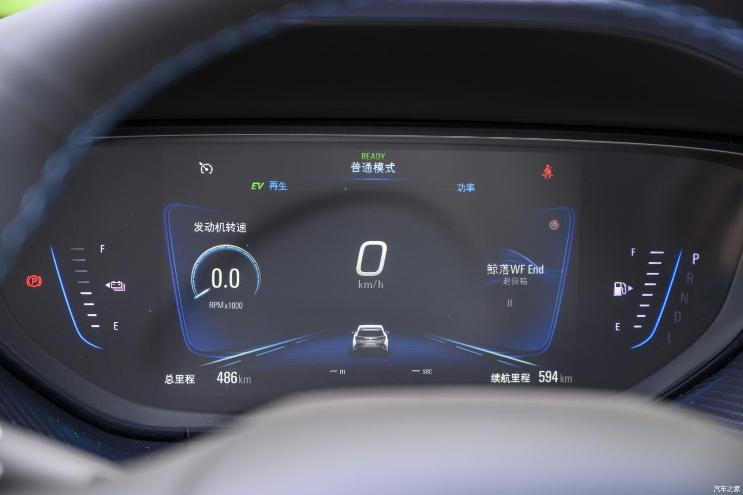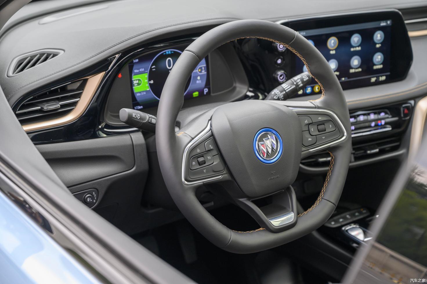 方向盘的造型手感偏细,对于我这样手大的人来说似乎不够过瘾。好在,方向盘后面仍然加入了媒体控制键,以及能量回收拨杆。别克似乎很喜欢把重要的功能按键摆放在方向盘后面,在之前体验昂科威S的时候我就深有体会。