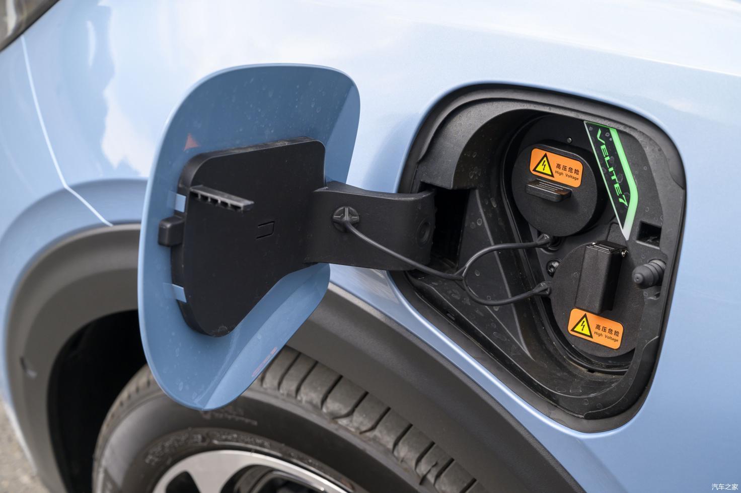 微蓝7的快充口和慢充口被集成在了一个盖板内,并且还有微蓝7的LOGO指示灯。不过我个人对这种闪闪发亮的LOGO不太感冒,因为它总能让我回忆起某些自主品牌的“奇葩设计”,如果做成亮银色的镀铬饰板效果应该会更好。