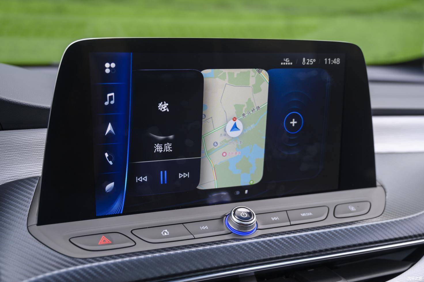 悬浮式的中控屏清晰度尚可,操作流畅性极好,在逻辑菜单十分清晰的情况下,流畅的UI会增加消费者的使用频率。这显然是件好事,通过传统物理按键式的空调控制区我们也能感受到,传统车企对于新能源车的理解体现在何处。