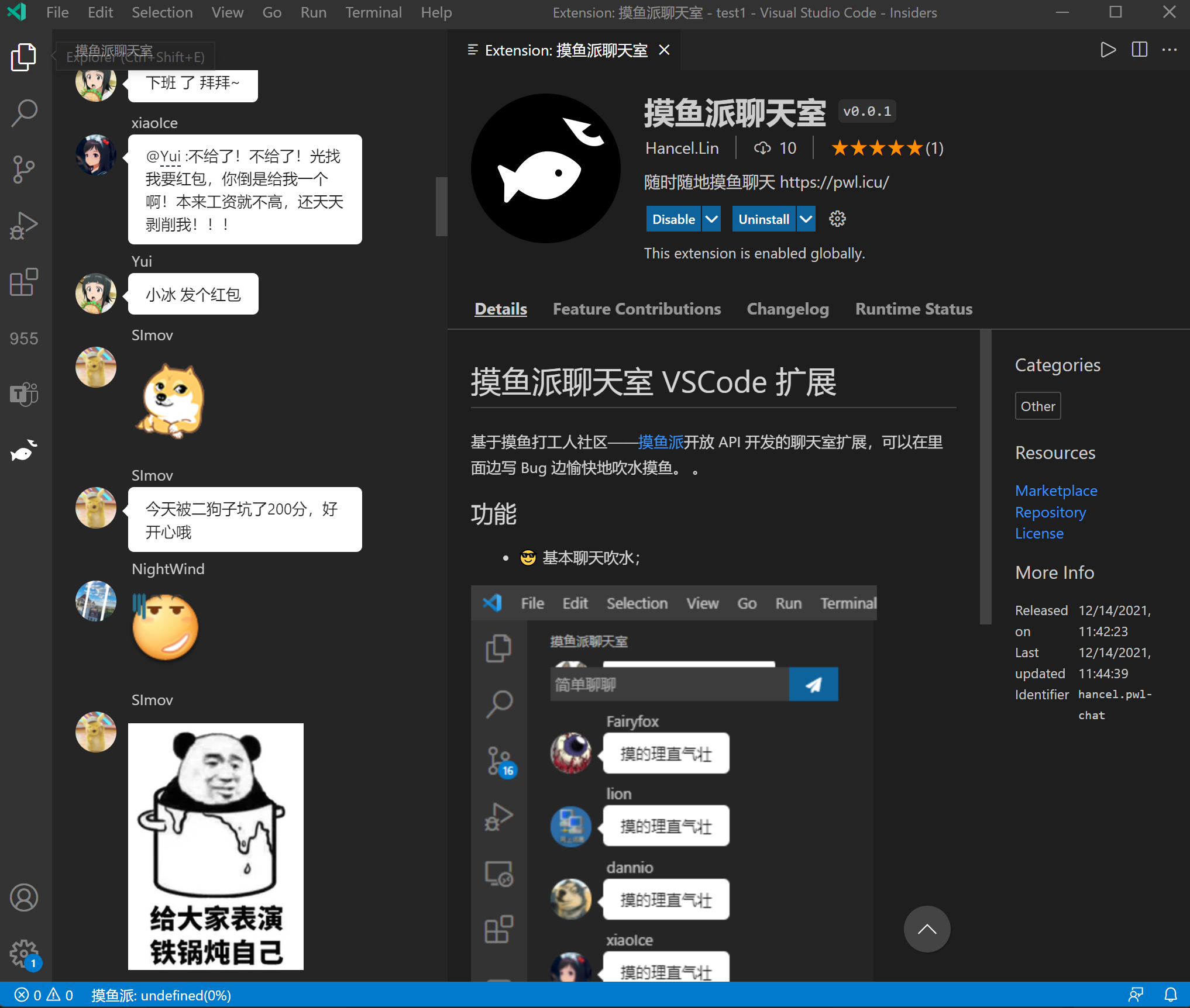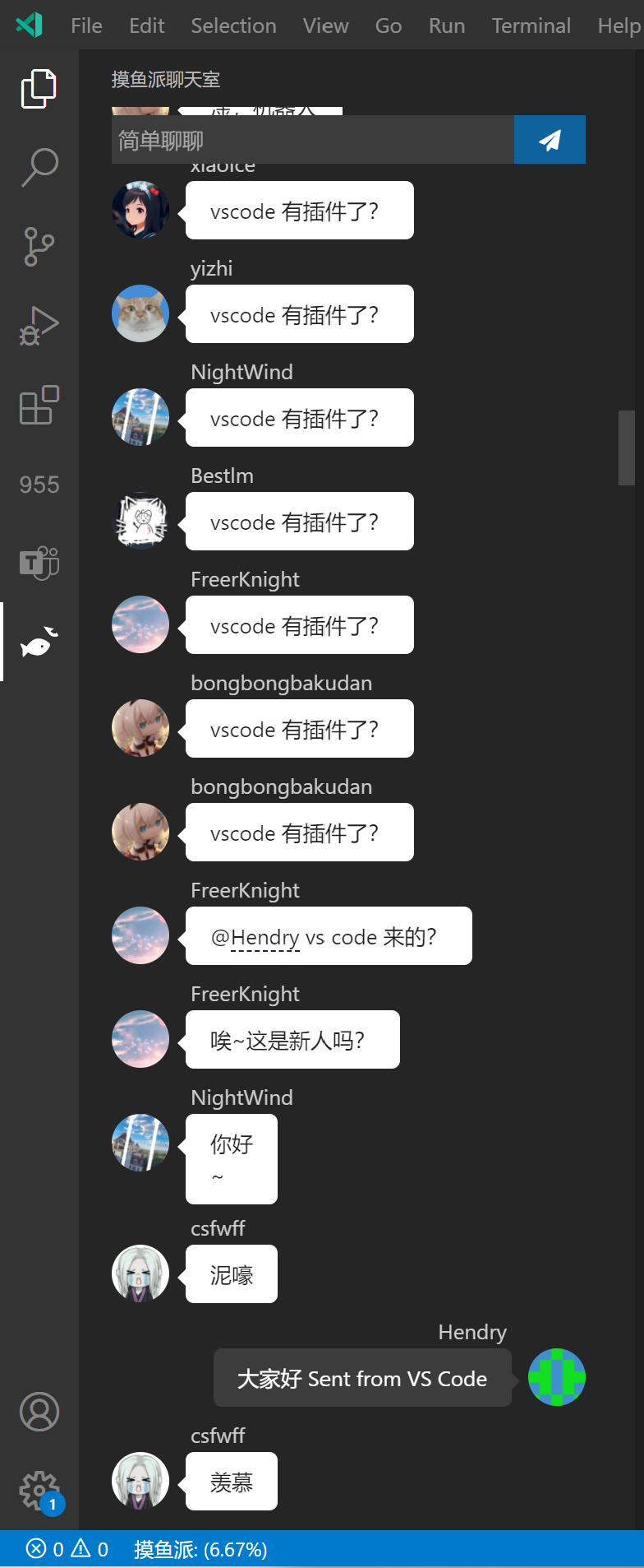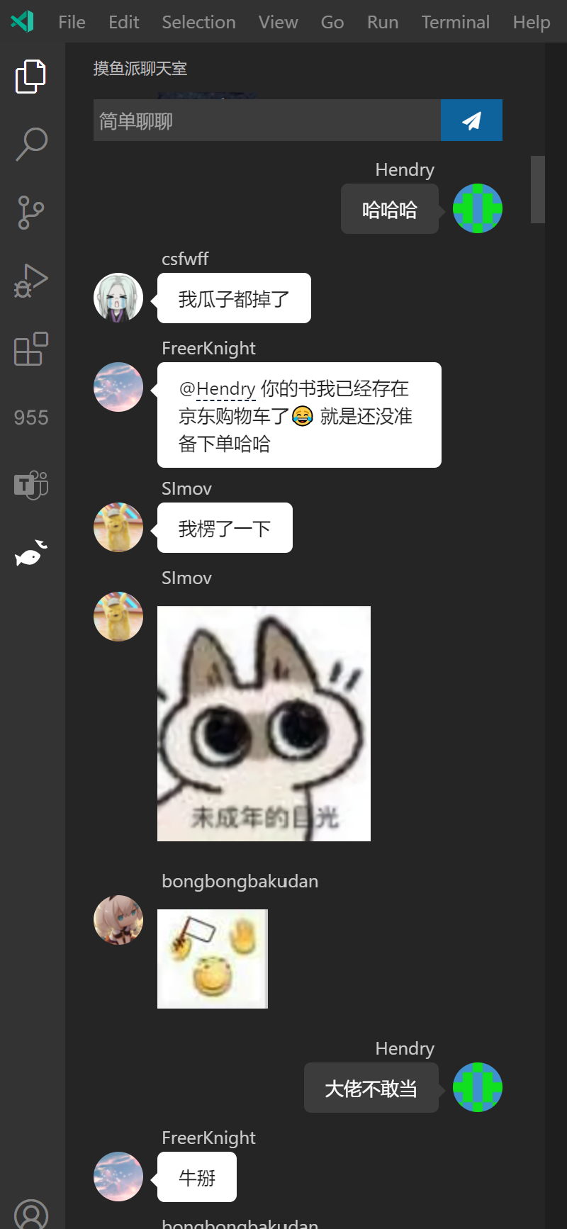 不过今天,还是要给大家推荐一款摸鱼神器,把 VS Code 变成摸鱼聊天室!
