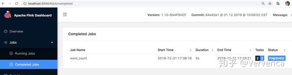 同时我们也可以在 WebUI 上面进行查看,在完成的 job 列表中,显示如下: