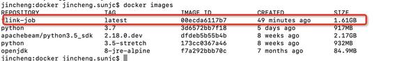 jincheng:docker jincheng.sunjc$ ./build.sh --job-artifacts ~/deploy_demo.py,Python-driver.jar,pyarrow-0.12.0a0-cp36-cp36m-linux_x86_64.whl --with-Python3 --from-local-dist Using flink dist: ../../flink-dist/target/flink-*-bin a . a ./flink-1.10-SNAPSHOT a ./flink-1.10-SNAPSHOT/temp ... ... Removing intermediate container a0558bbcbdd1 ---> 00ecda6117b7 Successfully built 00ecda6117b7 Successfully tagged flink-job:latest