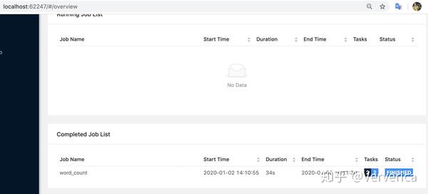 如果在打印 finished 之前查看之前的 web 页面,我们会发现 Session 集群会有一个正确运行的作业,如下: