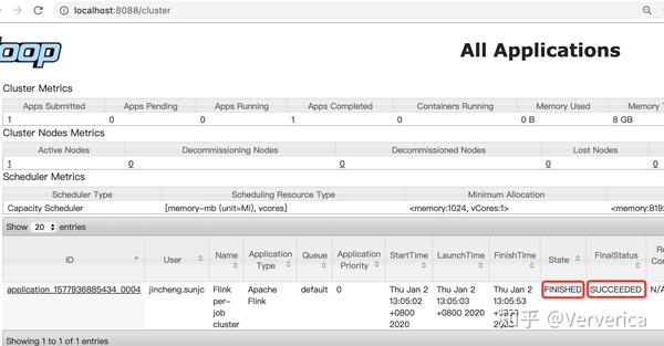 上面信息已经显示运行完成,在 Web 界面可以看到作业状态: