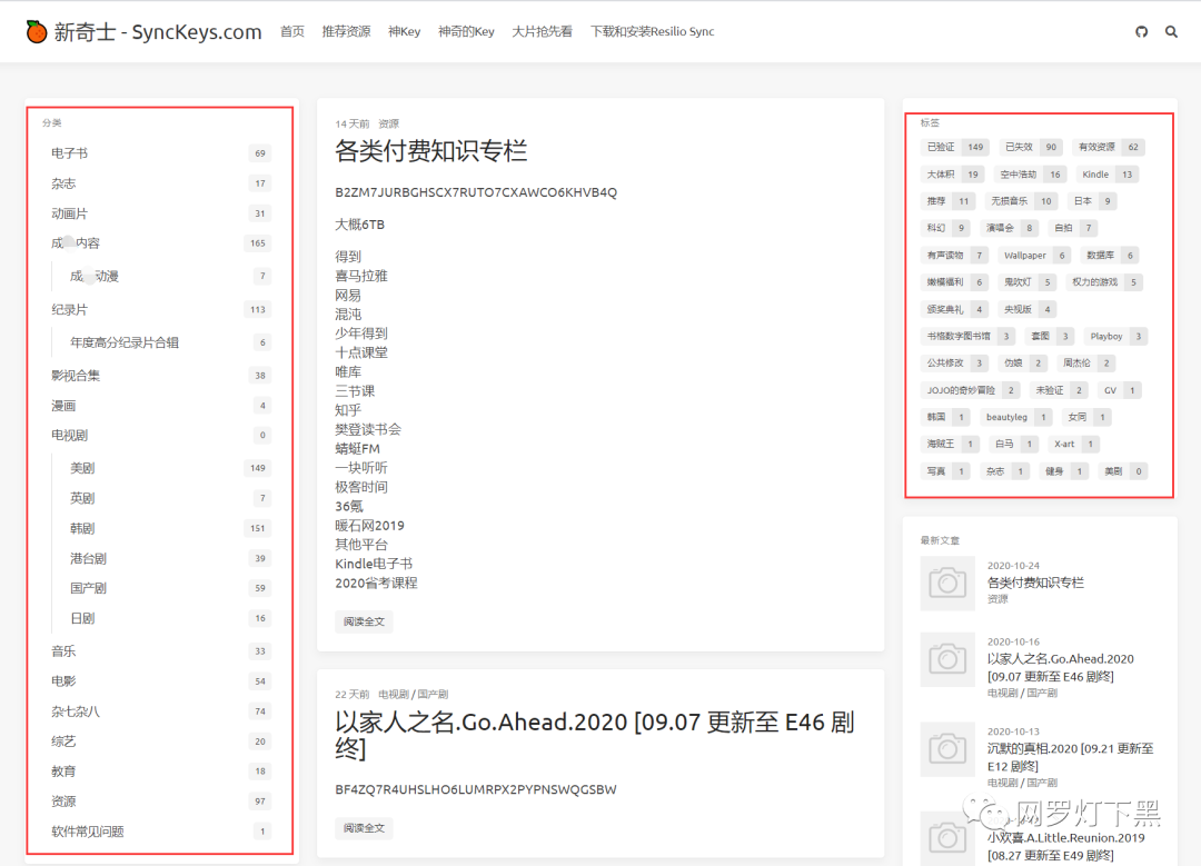 还有一个叫做新奇士的资源网站,上面的资源也不少,当然和神 Key 就相形见绌了,不过分类还是很细致,还带各种标签,找起来也非常容易。