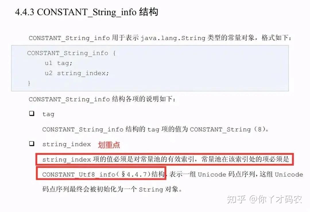 我们可以看到 String类型的表示是 CONSTANT_String ,我们来看下CONSTANT_String具体是如何定义的。
