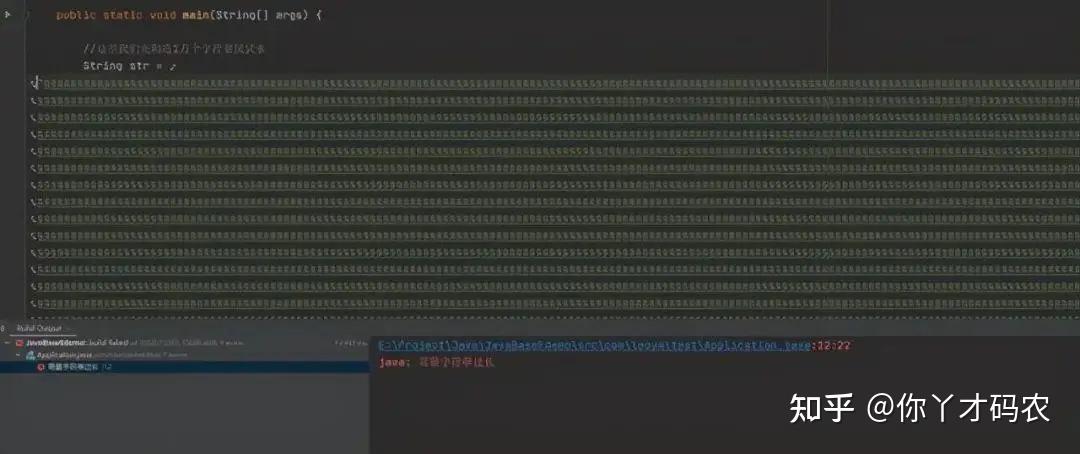以上是我通过定义字面量的形式构造的10万个字符的字符串,编译之后虚拟机提示报错,说我们的字符串长度过长,不是说好了可以存21亿个吗?为什么才10万个就报错了呢?