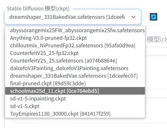 - 大模型(Ckpt):放入 models\Stable-diffusion
