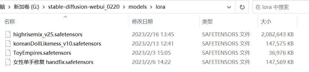 - Lora/LoHA/LoCon 模型:放入 extensions\sd-webui-additional-networks\models\lora,也可以在 models/Lora 目录