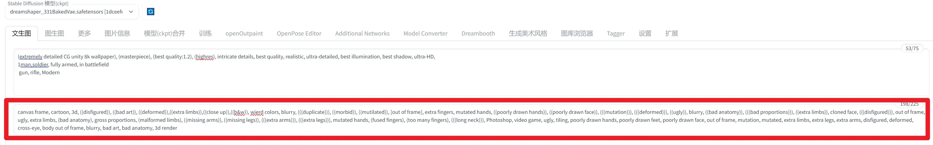 - 在第二个框中填入负面提示词(Negative prompt),你不想要生成的东西进行文字描述