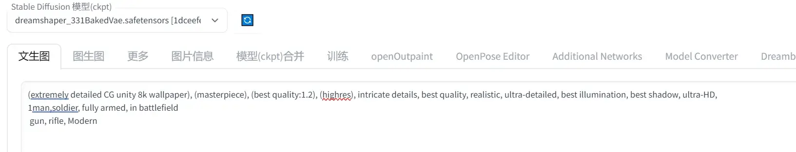 - Checkpoint(ckpt)模型 对效果影响最大的模型。在 webui 界面的左上角选择使用。