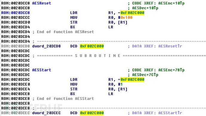 通过IDA pro识别此类结构将在后文介绍RTOS时探讨,利用这种固件加密方式的设备安全级别教高,一般设备只在升级时进行解密验证。