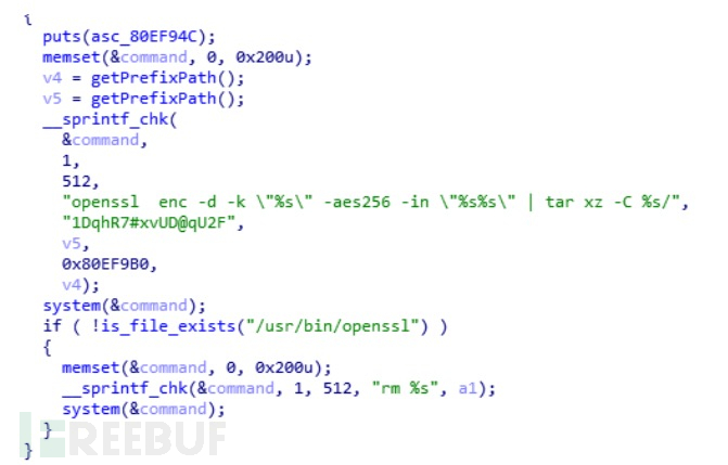 直接加载升级程序,定位openssl调用很容易就得到解密命令: