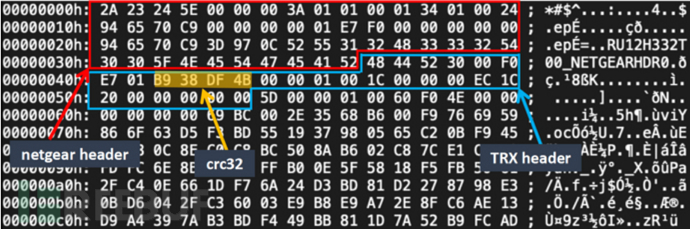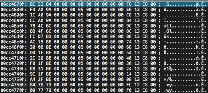 此种方法只限于固件始终以加密状态存在,当系统启动时才通过解密解包加载至flash,且设备缺乏(UART/JTAG等)动态调试手段。由于flash中有完整的解密过程,可以通过编程器读取flash,逆向解密算法和密钥,达到解密固件的目的。比如从某设备的读取的flash内存分布如下: