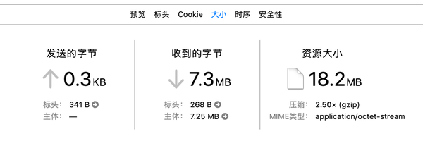 可以看到开启glib压缩后,18.2mb下降到了7.3mb,还是比较可观的,缩减了几倍的网络传输消耗