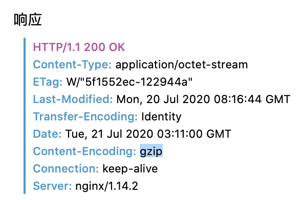 如果追求更高压缩率可以使用brotli,本文不再介绍。注意这个压缩方法不是每个浏览器都支持,比如说Safari就不支持