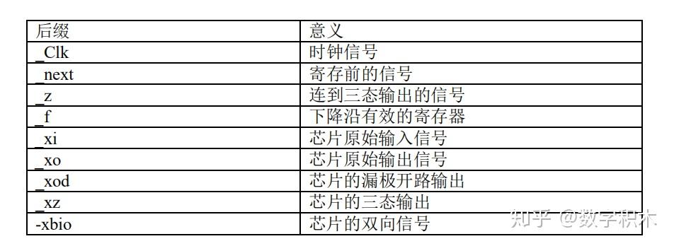 - 添加有意义的后缀 使信号名更加明确 常用的后缀如下: