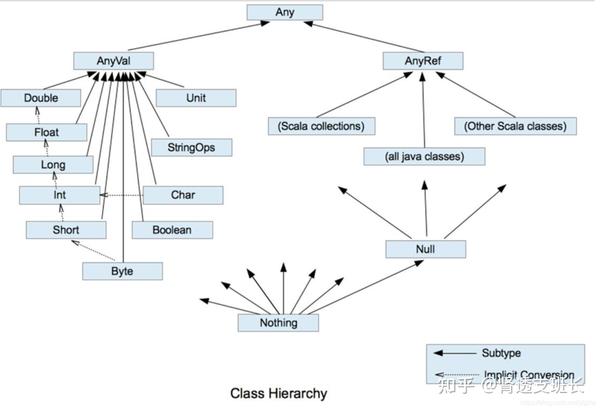 Scala和Java创新的区别就是 他的引用类型和基本类型有一个共同的父类Any