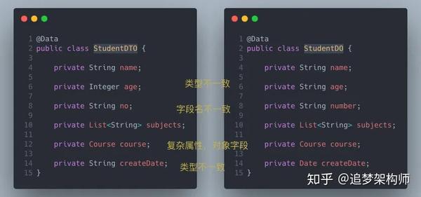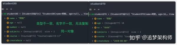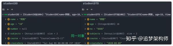此时对比studentDO与 studentDTO对象: