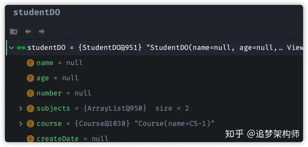 此时,我们观察 studentDO与 studentDTO对象属性值: