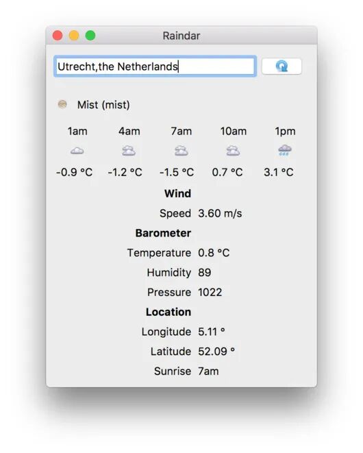 获取每日天气和15小时预报。数据来自免费的天气预报API https://openweathermap.org/