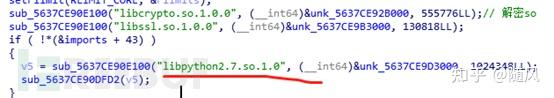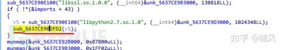 2. 在将libpython2.7.so.1.0,就该函数sub_5637CE90DFD2负责获取libpython2.7.so.1.0的导出函数。
