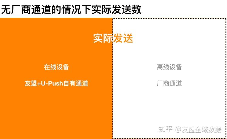 如图所示,如果您的App一家手机厂商通道都没有集成,实际发送数就会大大减少。此时,消息只会发送到活跃应用上,离线的应用也就是从手机后台退出的应用将收不到消息。 所以集成的厂商通道越多,消息下发的效果越好。