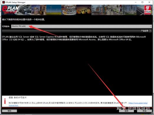 同时提示:EPL AN建议应用SQL Server或者SQL Server Express作为部件管理、项目管理和字典的数据库系统。在使用SQL数据库系统时可能使用两种Microsoft Office (32 位和64位)。如果为了部件管理、项目管理和字典的数据库需要使用Microsoft Access,那么需要为Microsoft Office64位。也就是说我们的EPLAN软件是在Microsoft Office软件下运行的,必须在PC端已安装了Microsoft Office软件才行;(建议装2013版本以上)