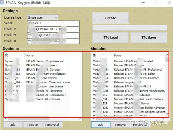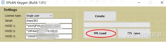 第六步:打开Keygen文件中的EPLANKeygen(EPLAN算号机)应用程序;如图18所示。此应用程序执行后再点击TPL Load按钮(加载授权模板),接着会生成一个TPL文件,选择打开,如图19所示。打开后会生成如图20标红部分的一些ID;